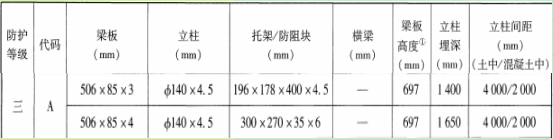 三(A)級a型波形梁護欄規格參數及適用范圍: