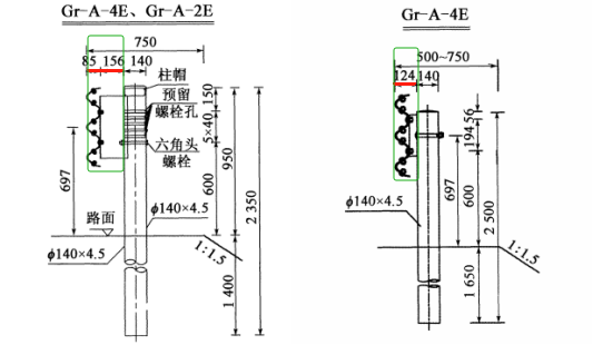 高速公路路側A級兩種波形護欄的構造和尺寸應符合以下規定: