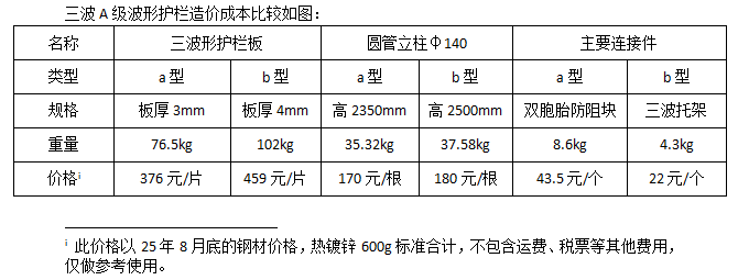 三波A級波形護欄造價成本比較如圖: