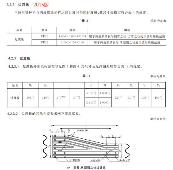 c) 更改了三波形梁板用途、型號和規格(見4.3.1,2015年版的3.3.1);
