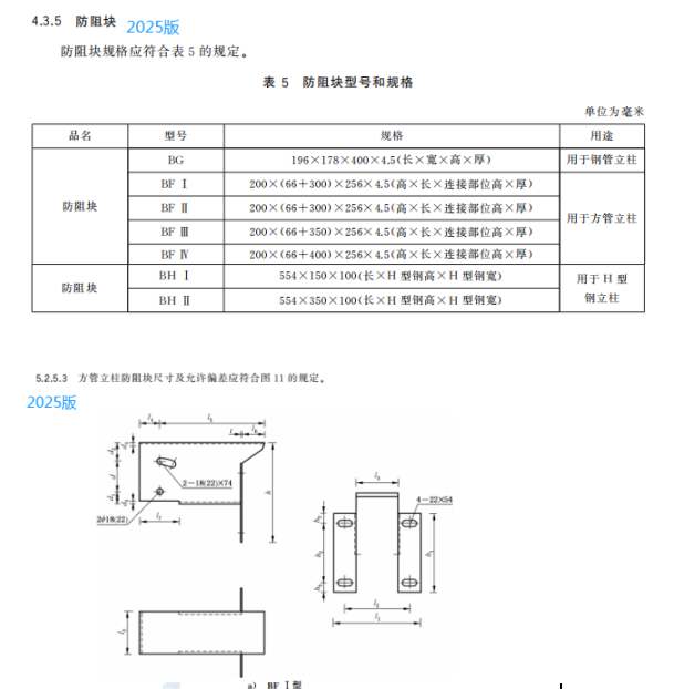 f) 更改了鋼管立柱防阻塊的用途、規格、尺寸和允許公差(見4.3.5、5.2.5.1、5.2.5.2,2015年版的3.3.5、4.2.5.1、4.2.5.2);