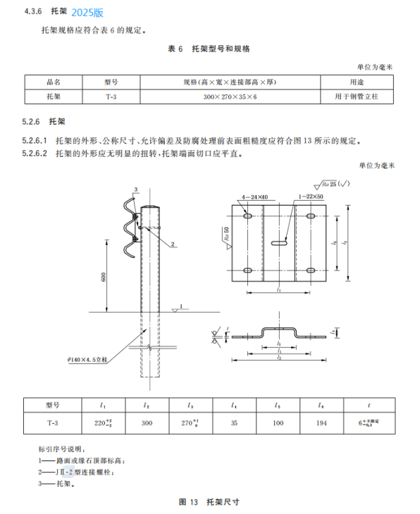i) 增加了托架的用途、規格、尺寸和允許公差要求(見4.3.6、5.2.6);
