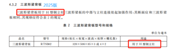 1、更改了產品組成,可以看到產品組成內橫隔梁替換成了托架,三波背板的使用該范圍也僅限于H型立柱中,在常規的A級、SB級、SA級、SS級等三波護欄中不再使用,安裝時也便捷了很多。