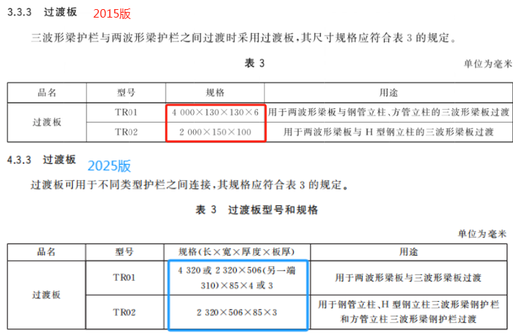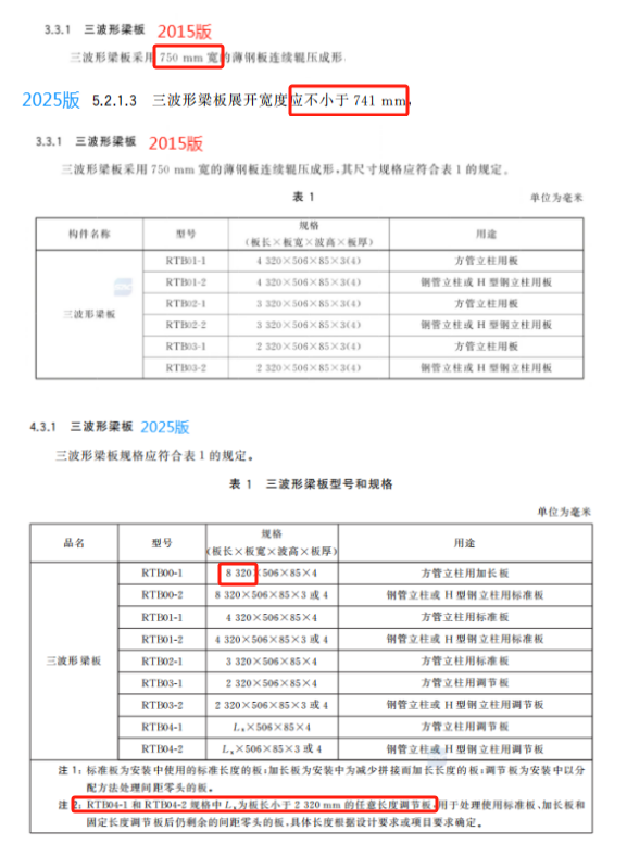 與GB/T 31439.2—2015版標準相比,2025版三波形護欄新標準修改比較顯著的幾點: