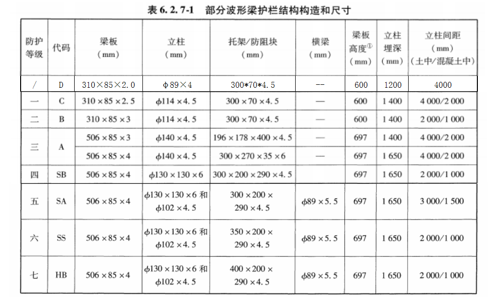 1、波形護欄防撞等級: