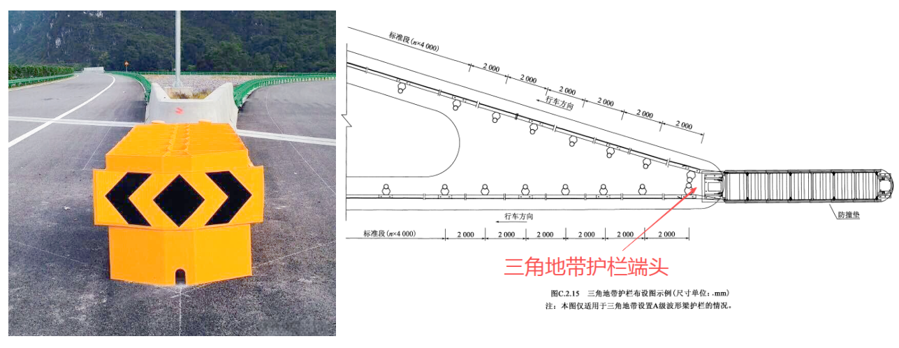 設置于中央分隔帶起點、終點及開口處護欄的端頭處理,應符合下列規定: