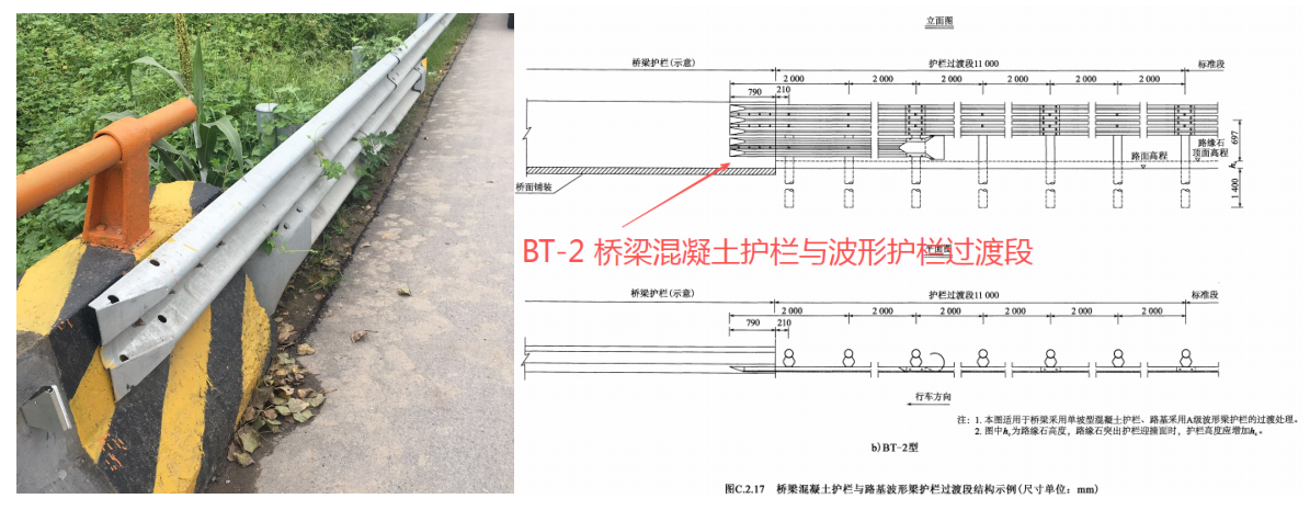 BT-2混凝土護欄與波形護欄過渡段——搭接式: